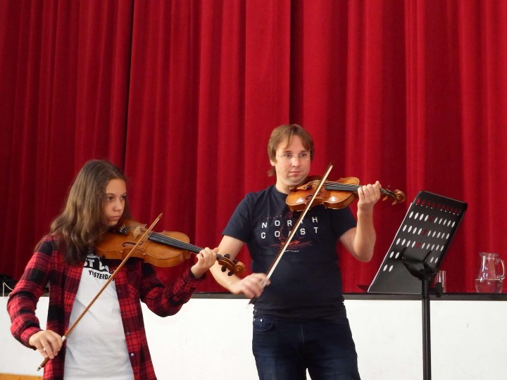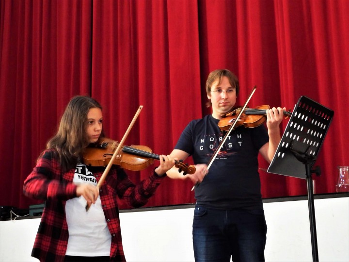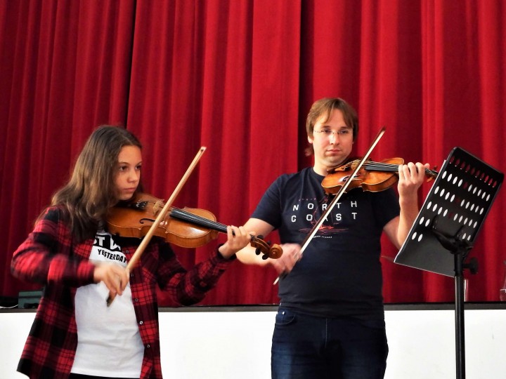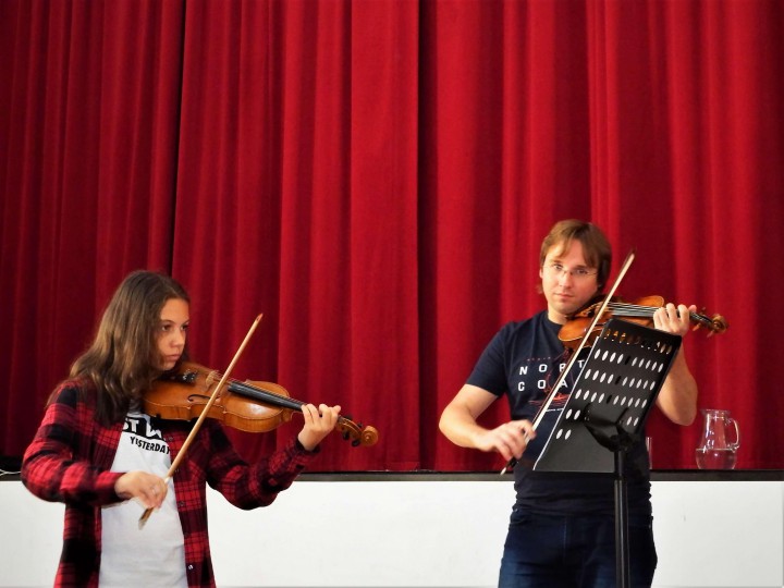 Profesionálni hudobníci Pavel Bogacz ml. (hra na husliach) a Alenka Hučková (hra na klavír) sa venovali našim žiakom na hudobných workshopoch. Žiaci si na svojich obľúbených skladbách mohli spolu s profesionálnmi hudobníkmi cvičiť rytmiku, správne držanie tela pri hraní na hudobný nástroj, ráz či správnosť hraných tónov. Hudobníci im ukázali nielen to, kde robia chyby pri hraní, ale im aj vysvetlili ako tieto chyby môžu odstrániť, následne s nimi aj cvičili, ako majú správne hrať. Hudobné workshopy mali veľmi kamarátsku atmosféru, žiaci sa na nich mohli čokoľvek spýtať čomu nerozumejú a v čom by sa chceli zlepšiť.