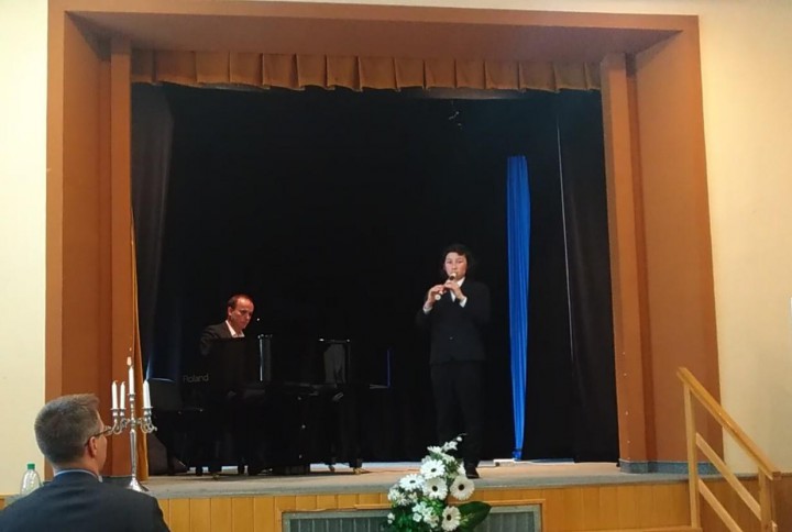 Pán učiteľ mu počas súťaže bol korepetítorom a spolu zahrali tri skladby: M. Praetorius: La Bourrée (Zo zbierky Terpsichore), J. Krček: Tanec, S. Joplin: The Entertainer.