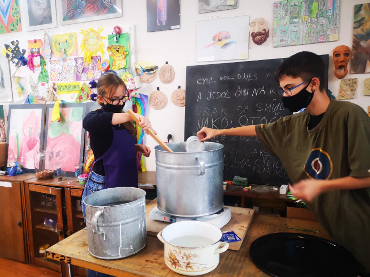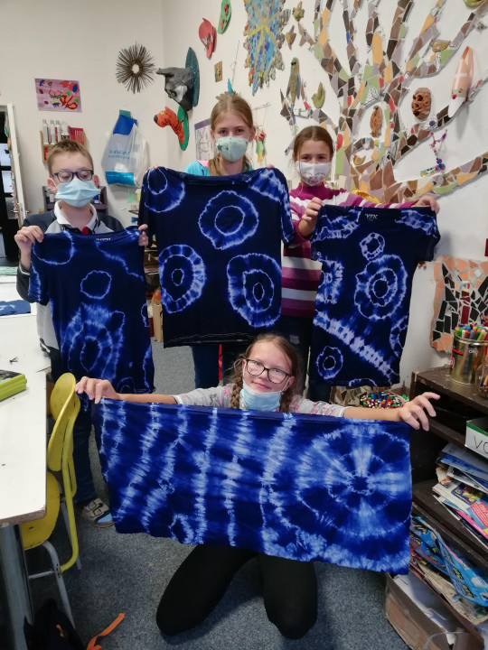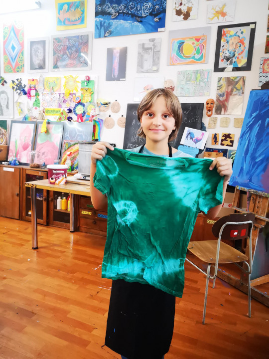 Vo výtvarnom odbore poskytujeme žiakom možnosť stretnúť sa a vyskúšať si rôzne výtvarné techniky. batikovanie je ďalšou z nich, ktorá výrazne podporuje kretivitu aj zručnosť. Techniku si skúsilo viacero ročníkov - ôsmaci, siedmaci, šiestaci, štvrtáci, piataci. Pracovali sme s rôznou farebnosťou - od modrej, cez fialovú až po rôzne odtiene zelenej. Žiaci si vyskúšali viacero techník viazania, čím im vznikli na látke rôzne vzory.