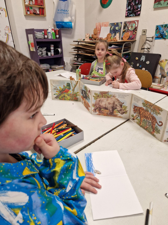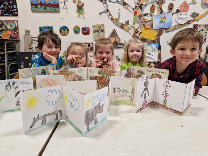 Žiaci si vytvorili leporelo s vlastným príbehom. Ich úlohou bolo premyslieť si dej tak, aby zapasoval do políčok leporela, dej ilustrovali a zároveň svojim knižným prvotinám vymyšľali názvy. Výsledky ich tvorivej práce nájdete vo fotografiách.