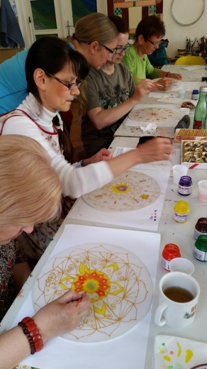 Výtvarný ateliér našej Súkromnej ZUŠ v máji 2016 naplnila zaujímavá aktivita. Takmer 20 dospelých žien si v kreatívnom prostredí plnom detských inšpirácií mohli vymaľovať svoje mandaly na hodváb. Vznikli neuveriteľne krásne dielka, ktoré sú o to zaujímavejšie, že okrem talentu autoriek vyjadrujú aj ich osobné horoskopické súvislosti.
