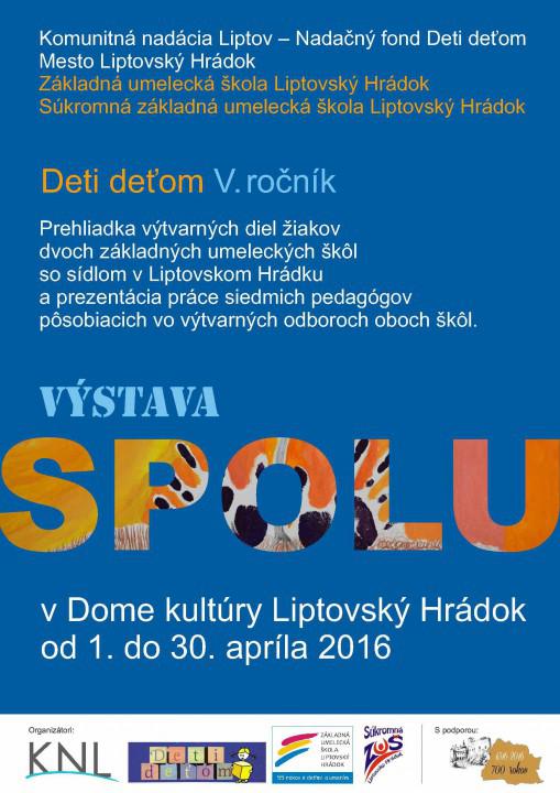 Výstava SPOLU je prezentáciou výtvarných diel žiakov dvoch základných umeleckých škol so sídlom v Liptovskom Hrádku a zároveň prezentácia práce siedmich pedagógov (Mgr. S. Beťková, Mgr. J. Khouri, Mgr. L. Vyšná, Mgr. V. Uhliarová, Mgr. K. Olexová, Mgr. art. R. Močiliak, Mgr. K. Vronková) pôsobiacich vo výtvarných odboroch oboch škol.